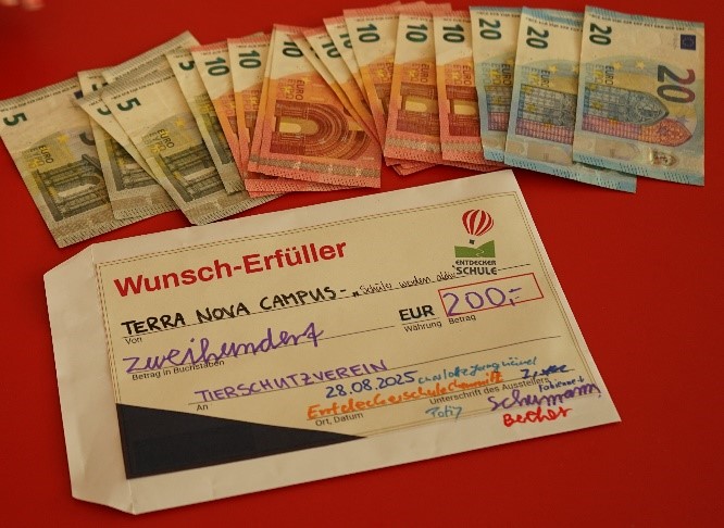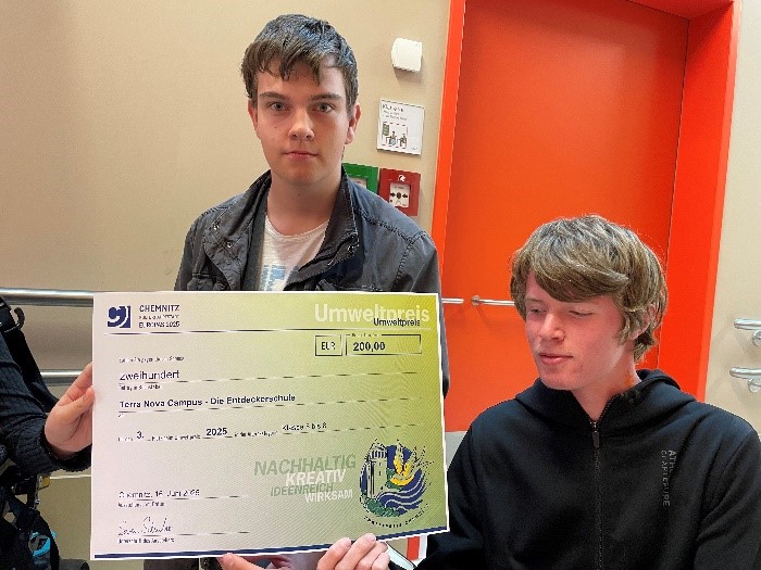 Der Wahlkurs „Schüler werden aktiv“ nahm im Schuljahr 2024/25 am Umweltpreis teil und erreichte mit seinem Projekt den dritten Platz. Daran gebunden waren 200 Euro Preisgeld, was der Kurs gern dem Tierschutzverein auf dem Pfarrhübel in Chemnitz zukommen lassen wollte.